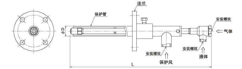 外形圖 附帶保護管·法蘭連接